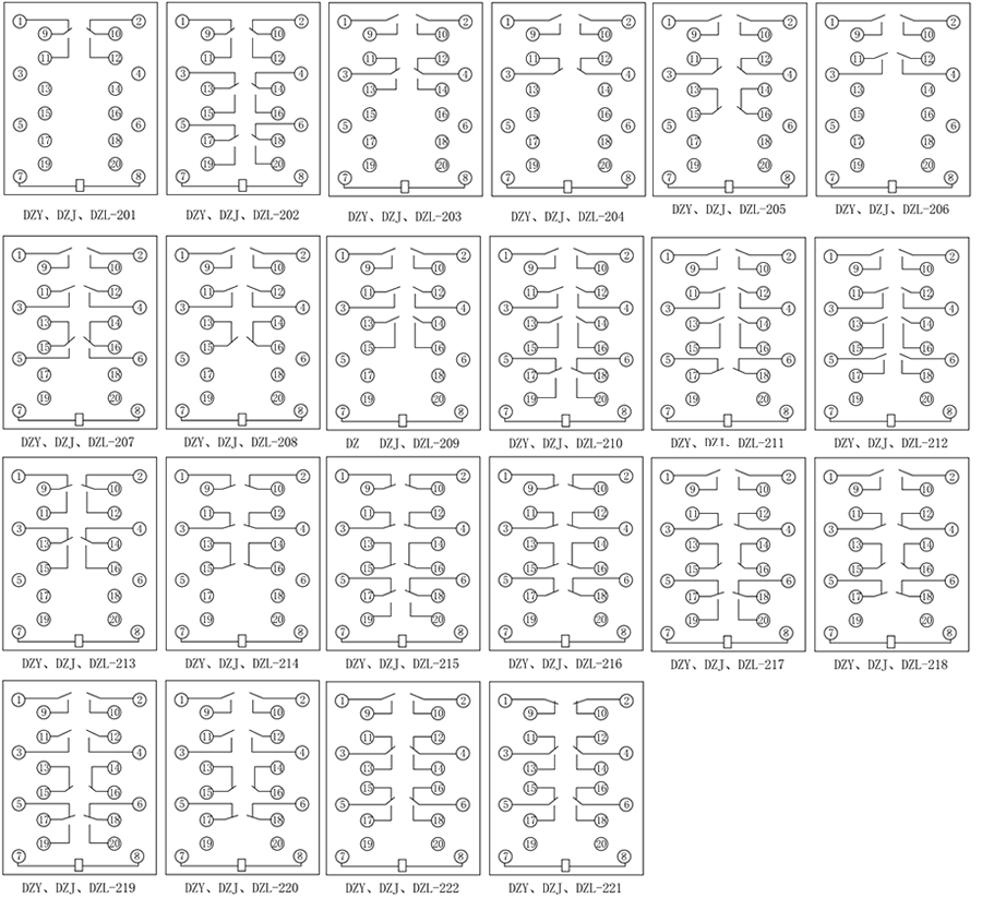 DZL-209X中间继电器用于交直流操作的各种保护和自动控制装置中,以增加触点的数量及容量。 中带"X"的为在"200"基本型基础上增加一副带机械保持的动合信号触点并带有动作信号指示器。DZY为直流电压型中间继电器,DZL为直流电流型中间继电器,DZJ为交流型中间继电器。